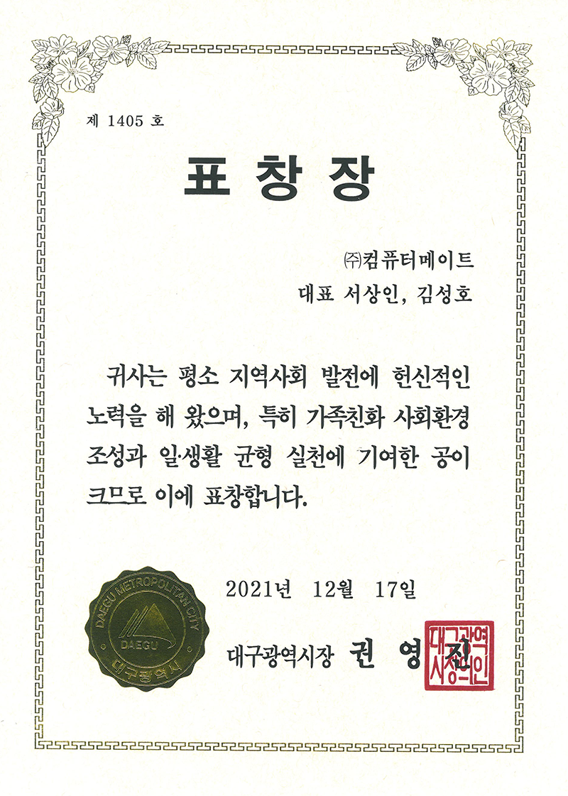 Daegu Mayor's Award for Contributions to Regional Software Industry Development